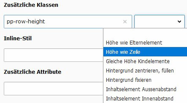 Inhaltselemente können über Attribute individuell gestaltet werden. Für Klassen und Attribute bestehen Definitionen, welche über das Auswahlmenü hinzugefügt werden können. Aus Sicherheitsgründen können nur Daten-Attribute zu den Attributen hinzugefügt werden.
