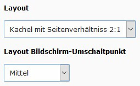Das Auswahlfeld "Layout" wurde mit Kachel-Layouts ergänzt und zur besseren Darstellung der Layouts auf den verschiedenen Bildschirmgrössen wurde das Auswahlfeld "Layout Bildschirm-Umschaltpunkt" hizugefügt.